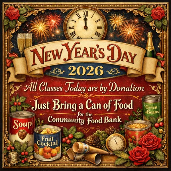 All classes today are by donation, just bring a can of food for the Community Food Bank